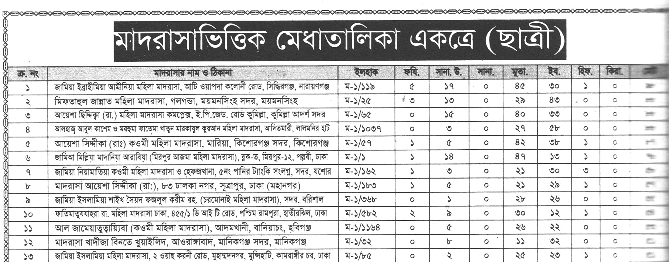 মুতাওয়াসসিতাহ: মেধাতালিকায় ৪১ জন।